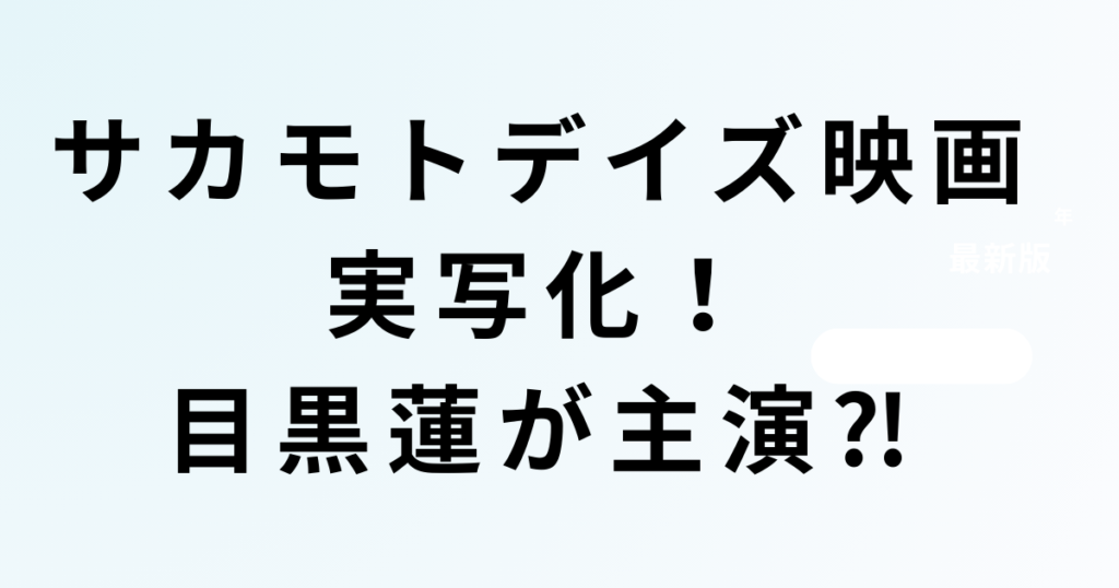 サカモトデイズ実写化の主演に目黒蓮⁈誰が適任か徹底考察!